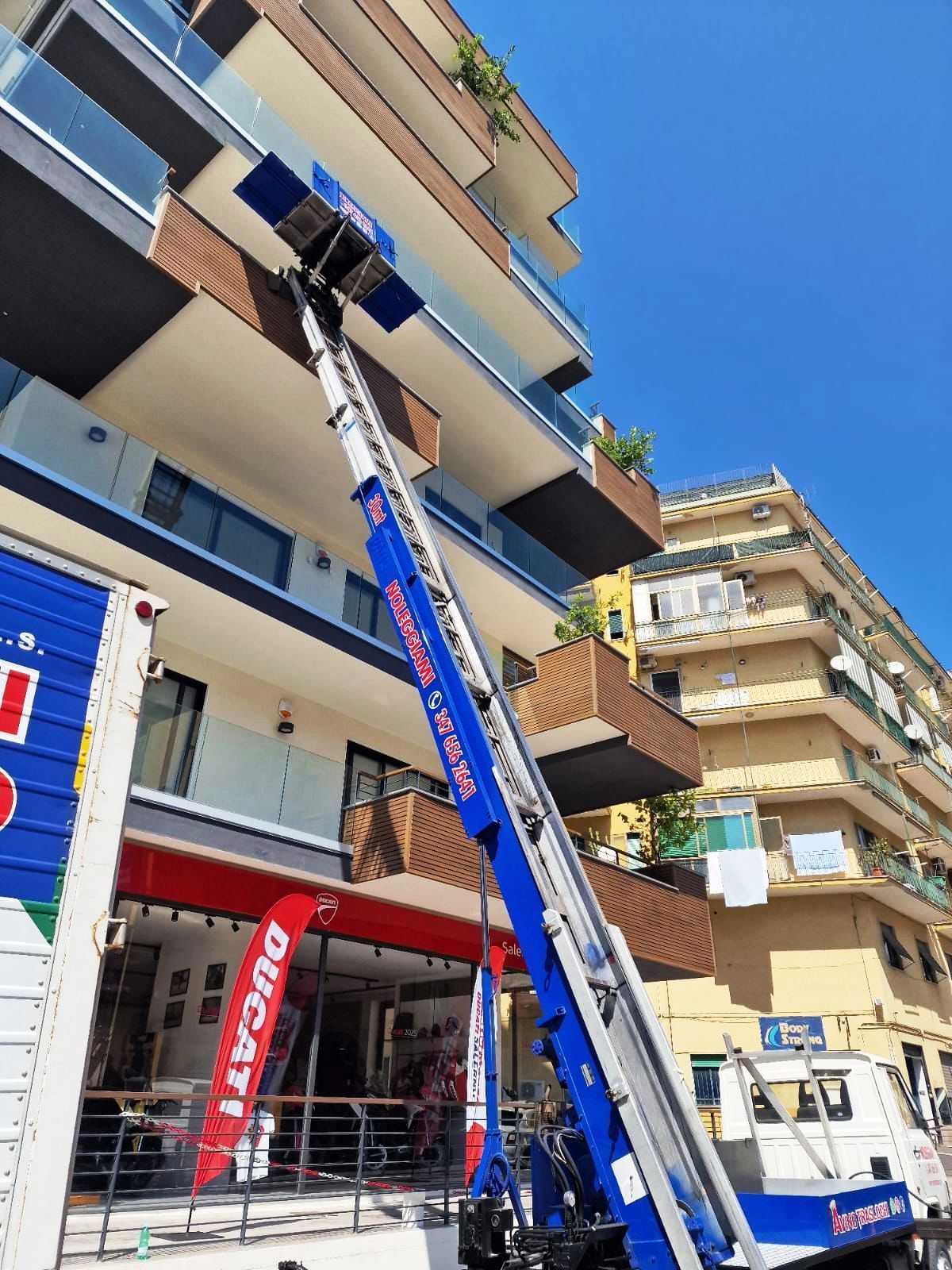 La nostra scala aerea da 30 metri è ideale per traslochi rapidi e sicuri, anche nei punti più difficili.